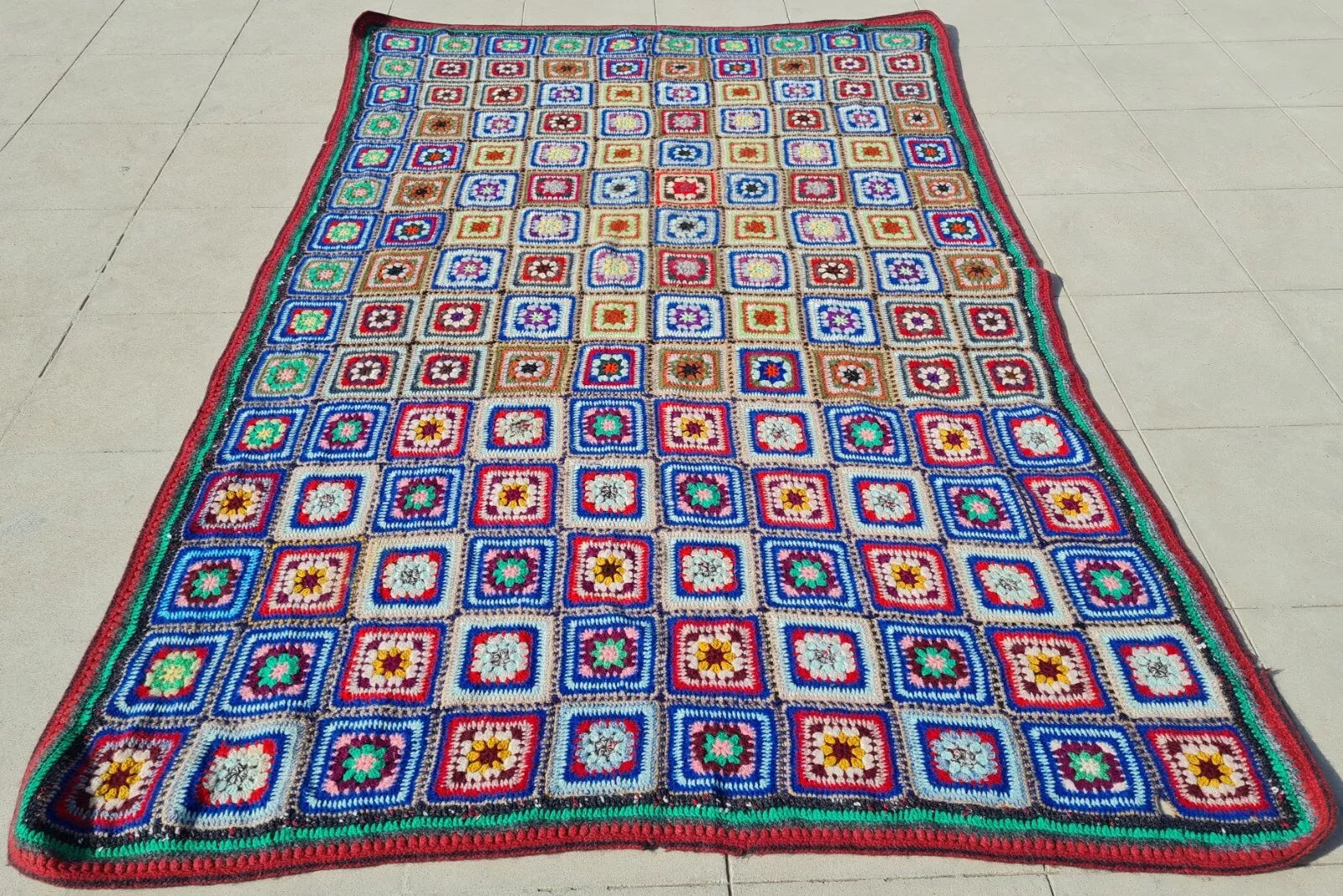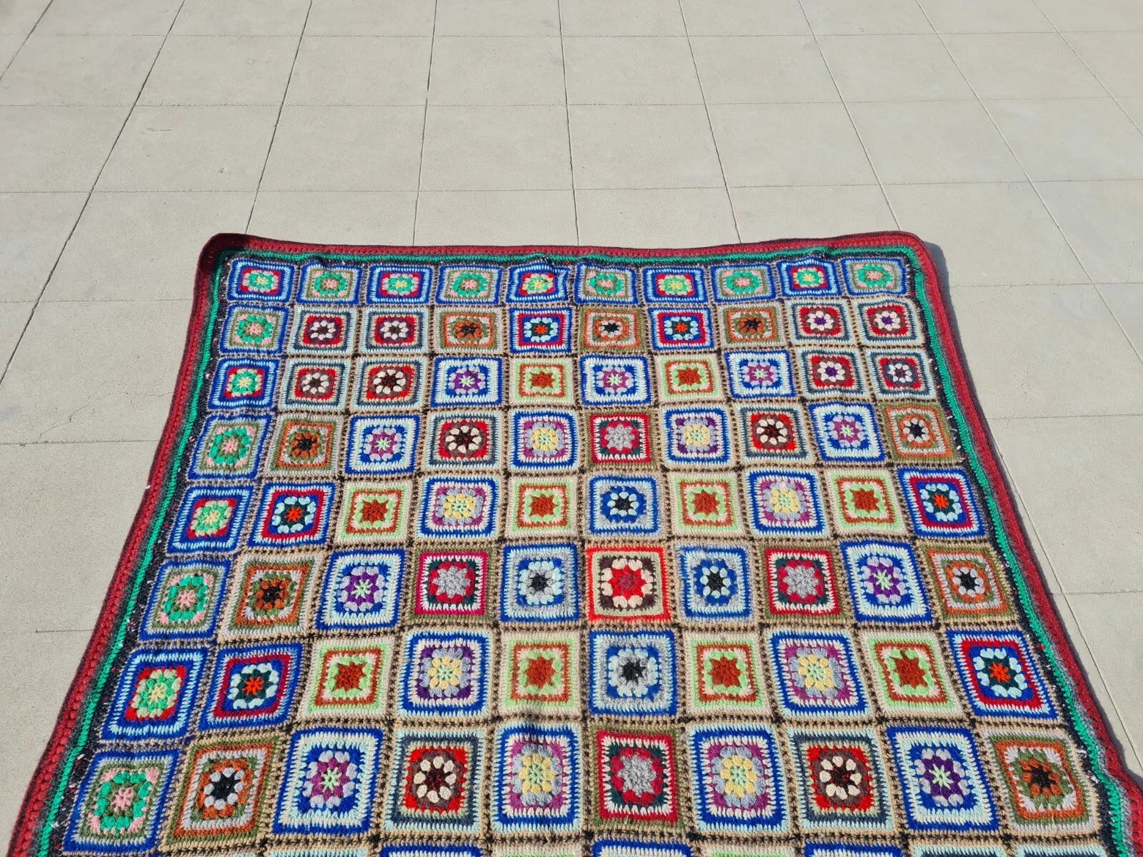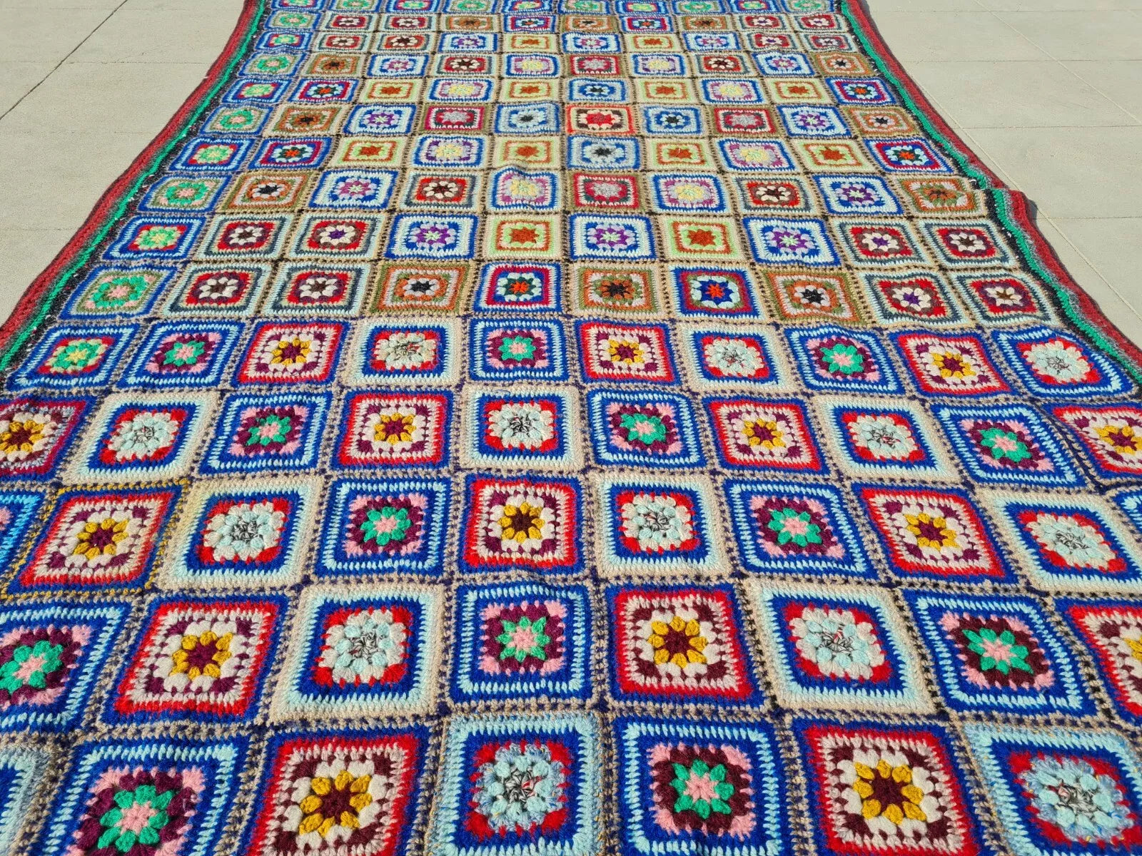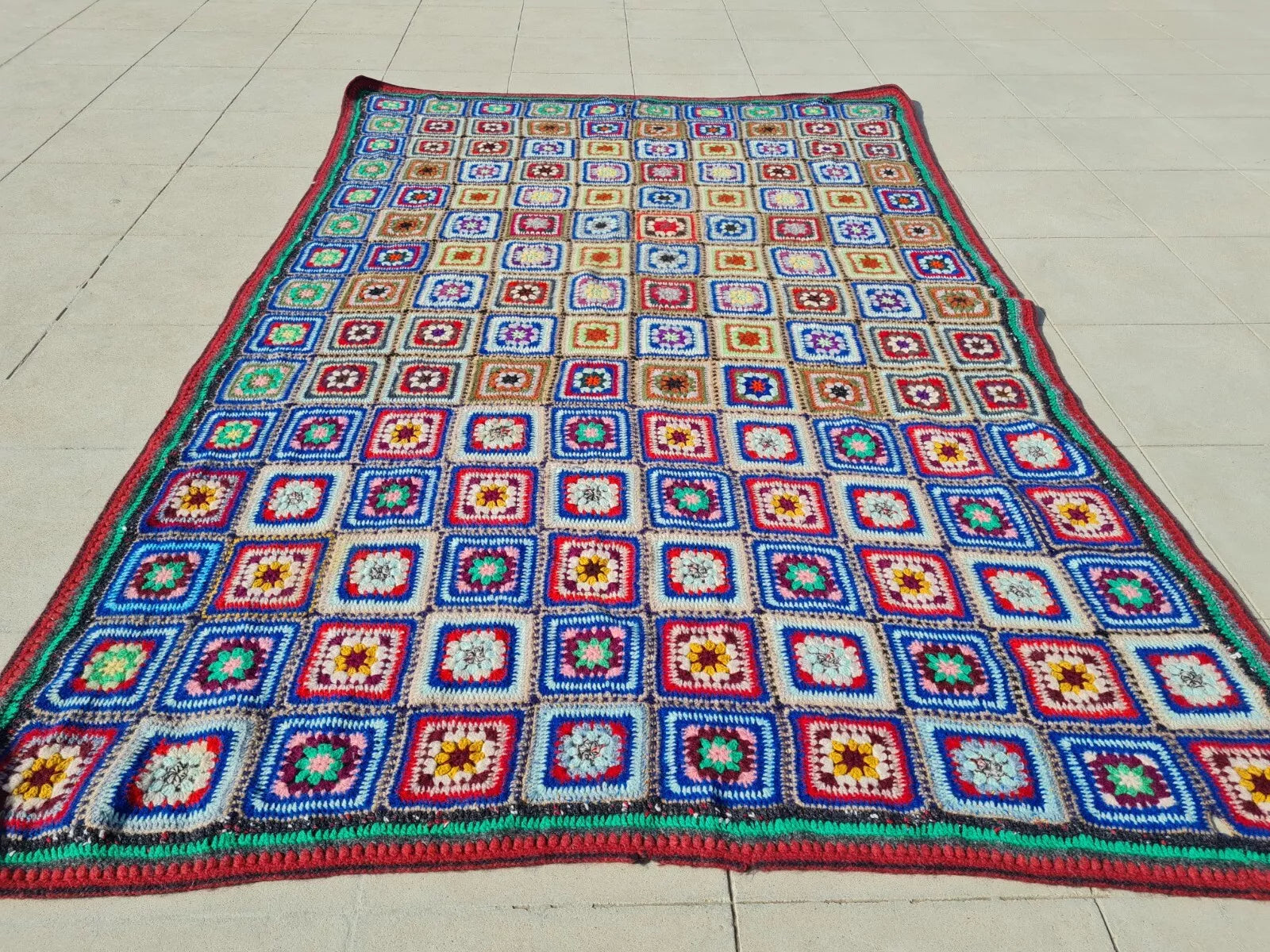 Roseann Couch Blanket Crocheted Colorful Core Boho 6 x 4 Ft
