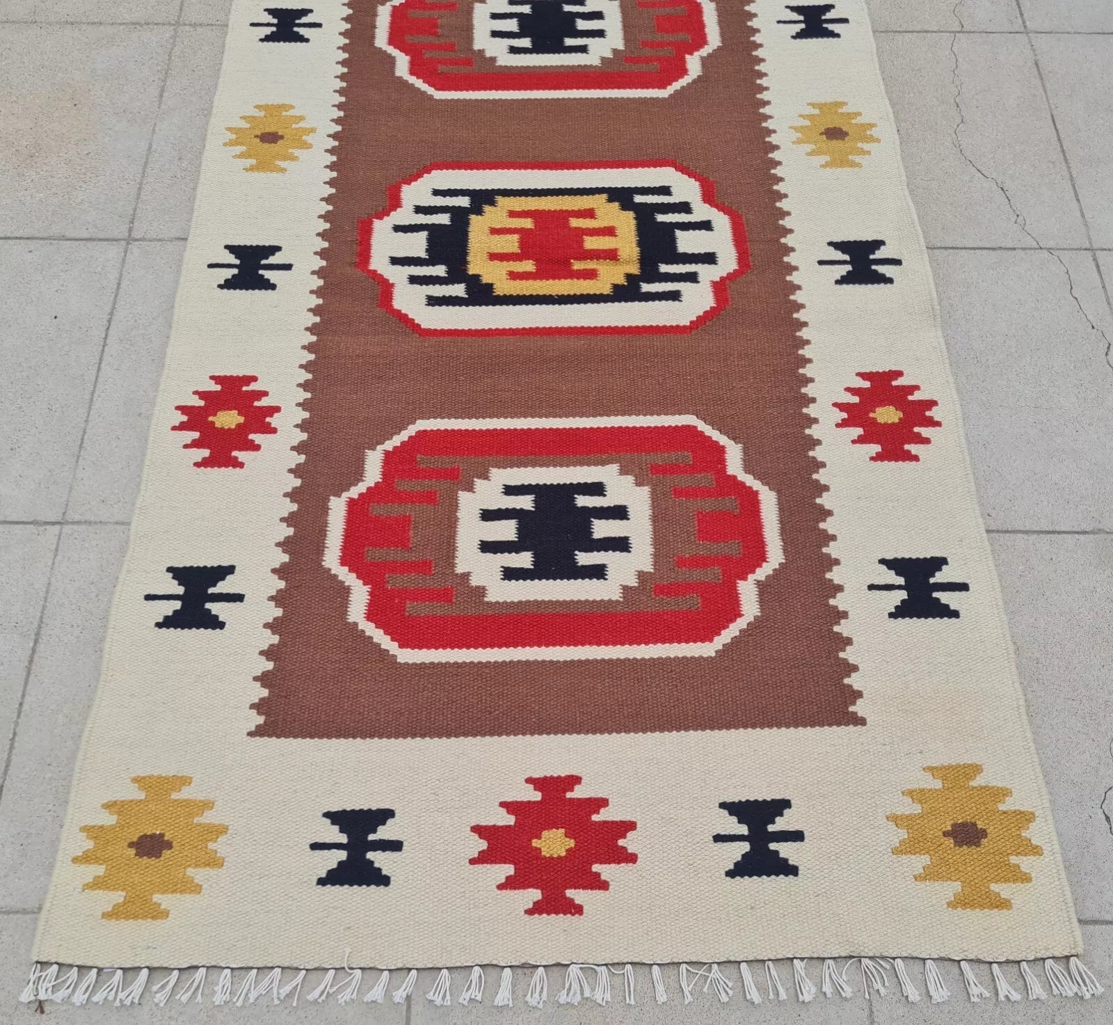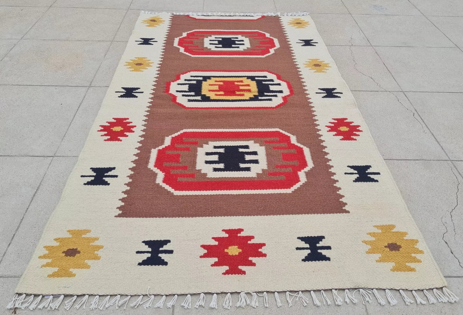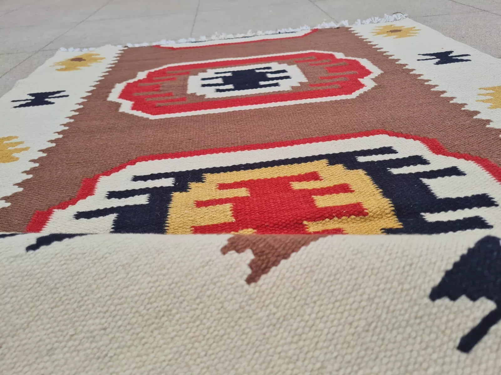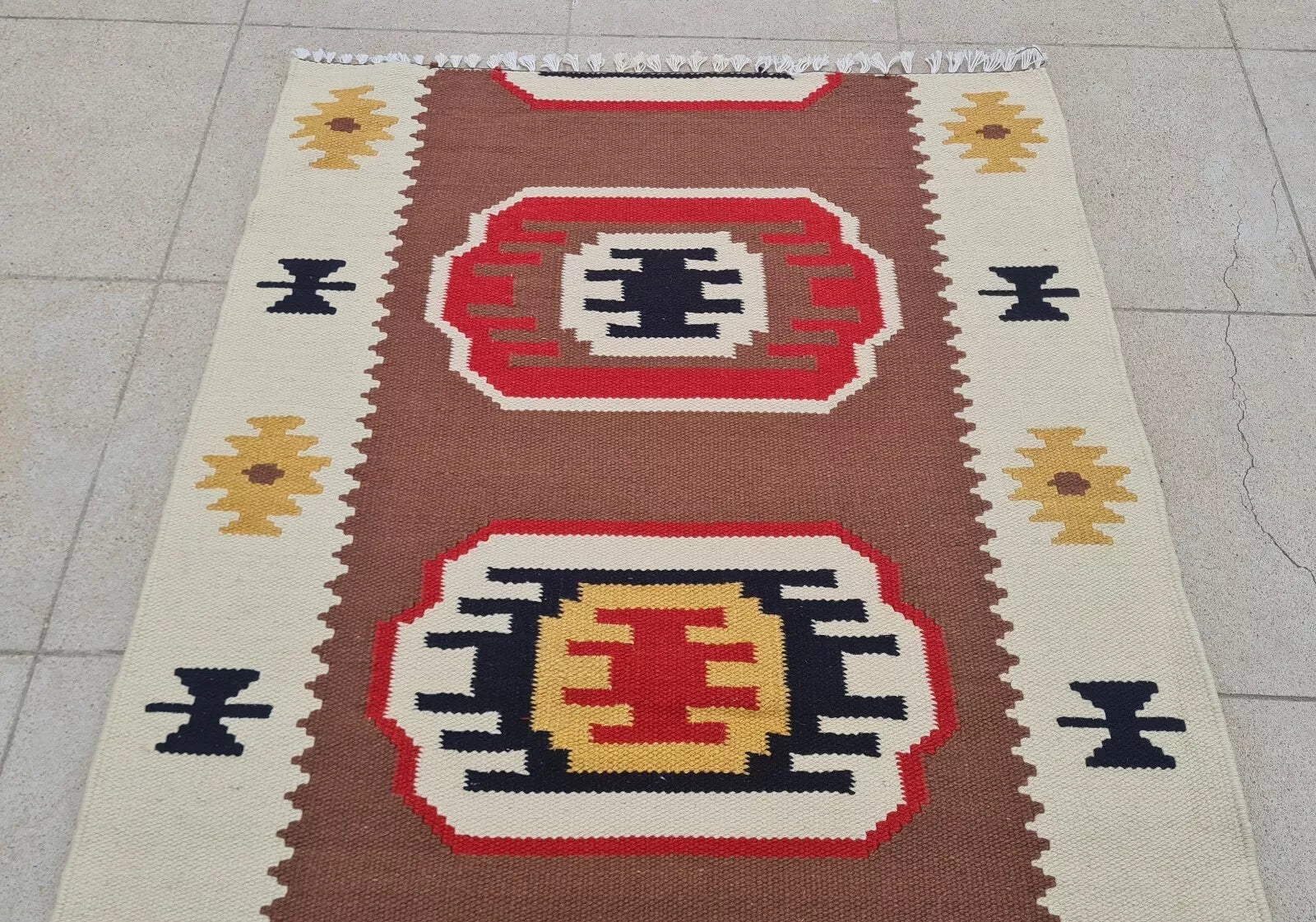 Hand Knotted Vintage Turkish Kilim Kilm Wool Area Rug 4 x 2 Ft