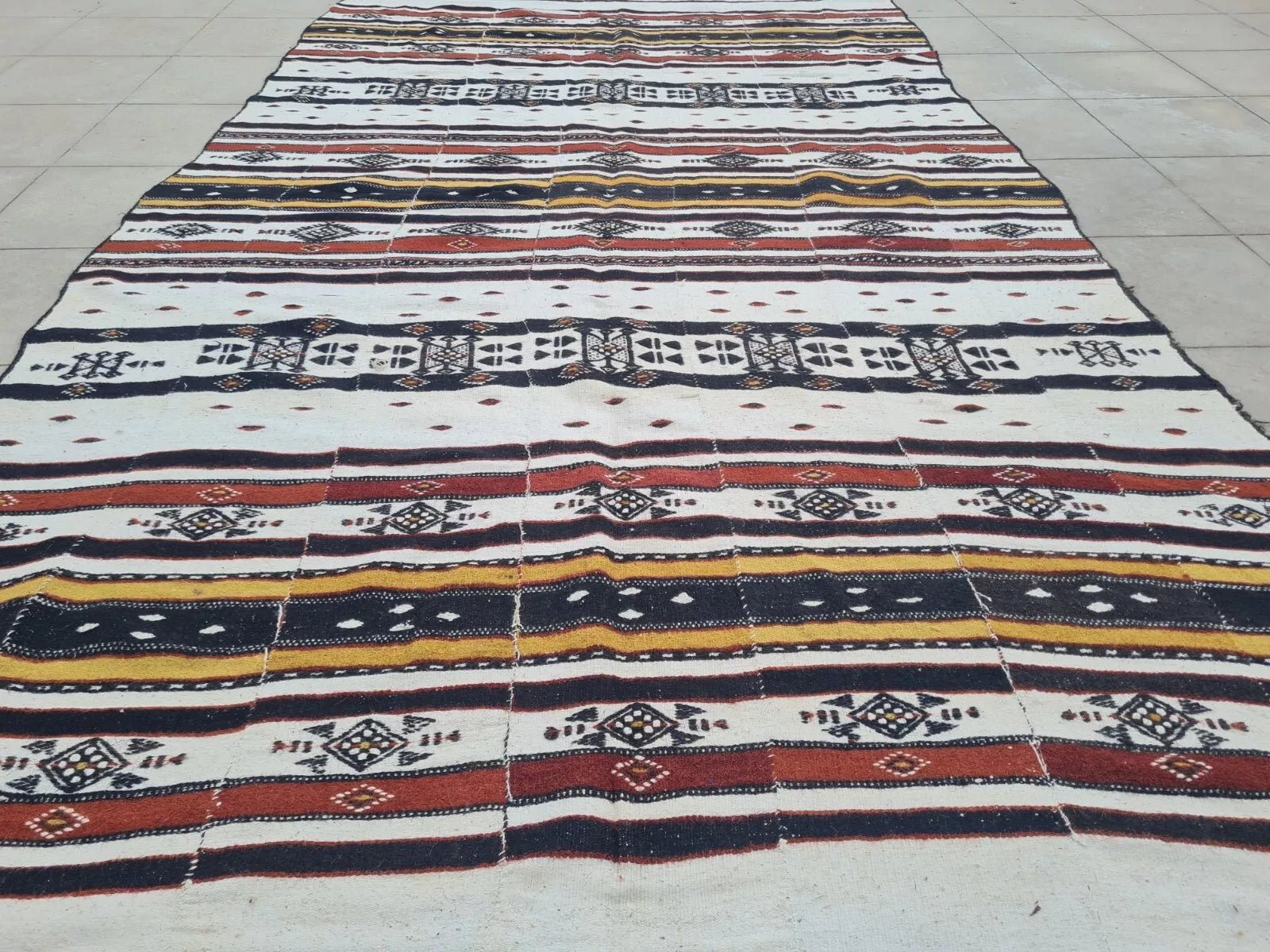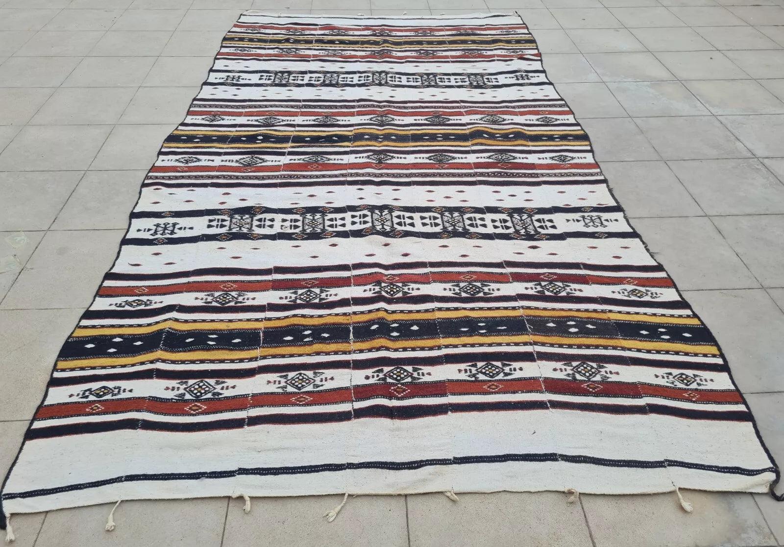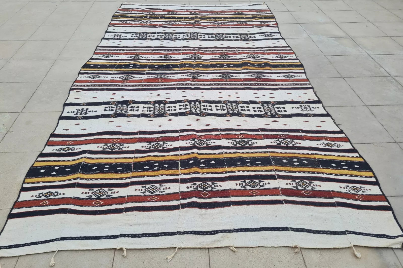 Authentic Hand Knotted Vintage Morocco Sumouk Kilim Wool Area Rug 8.5 x 4.7 Ft