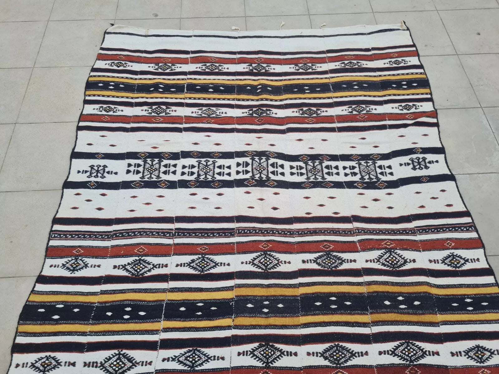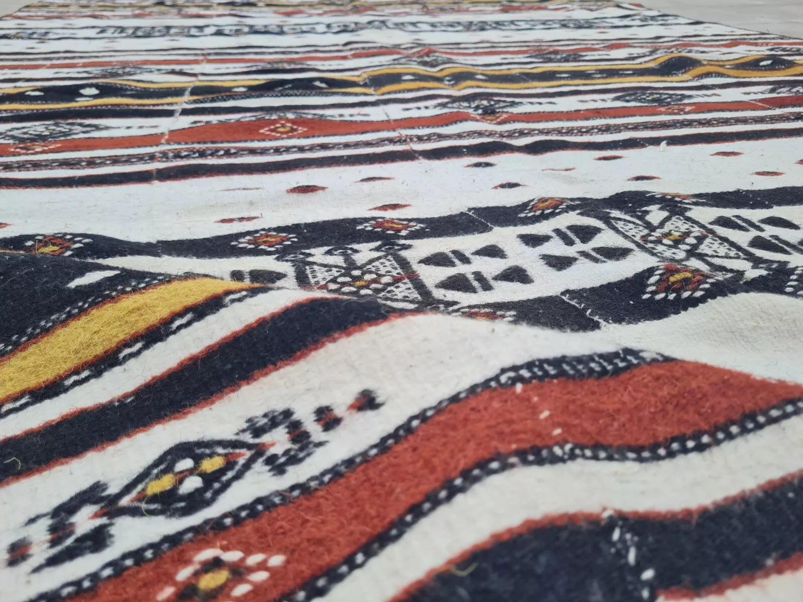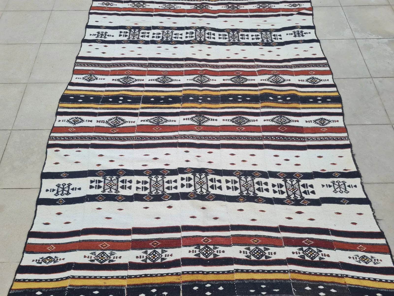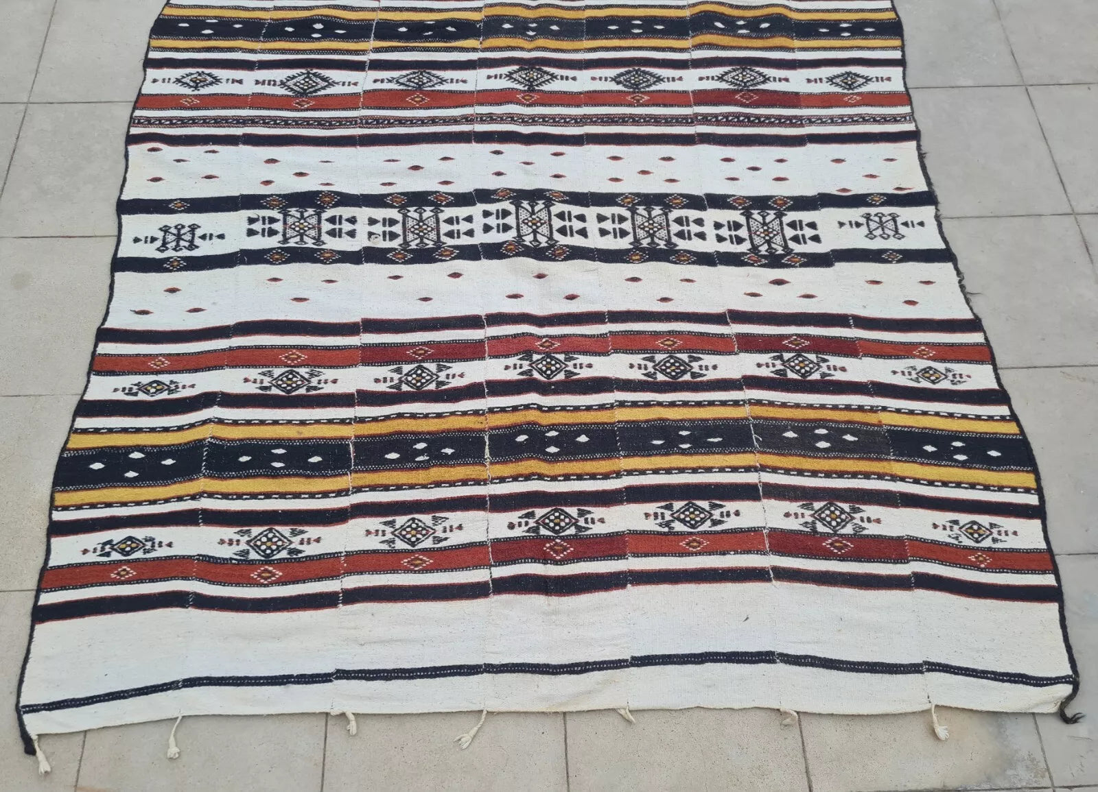 Authentic Hand Knotted Vintage Morocco Sumouk Kilim Wool Area Rug 8.5 x 4.7 Ft