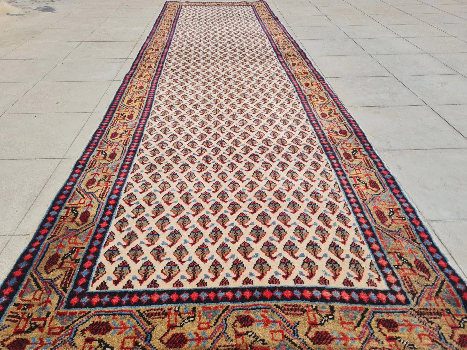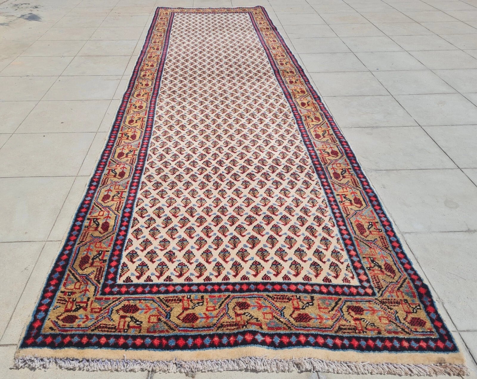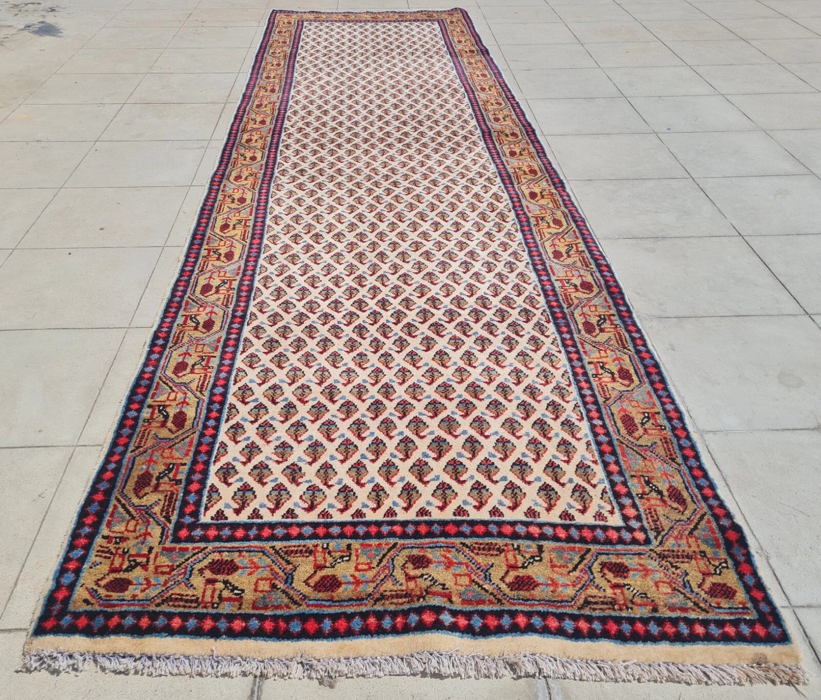 Hand Knotted Vintage Badam Gul Mir Wool Area Runner Rug 10 x 3 Ft