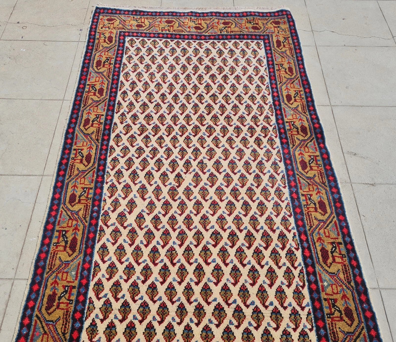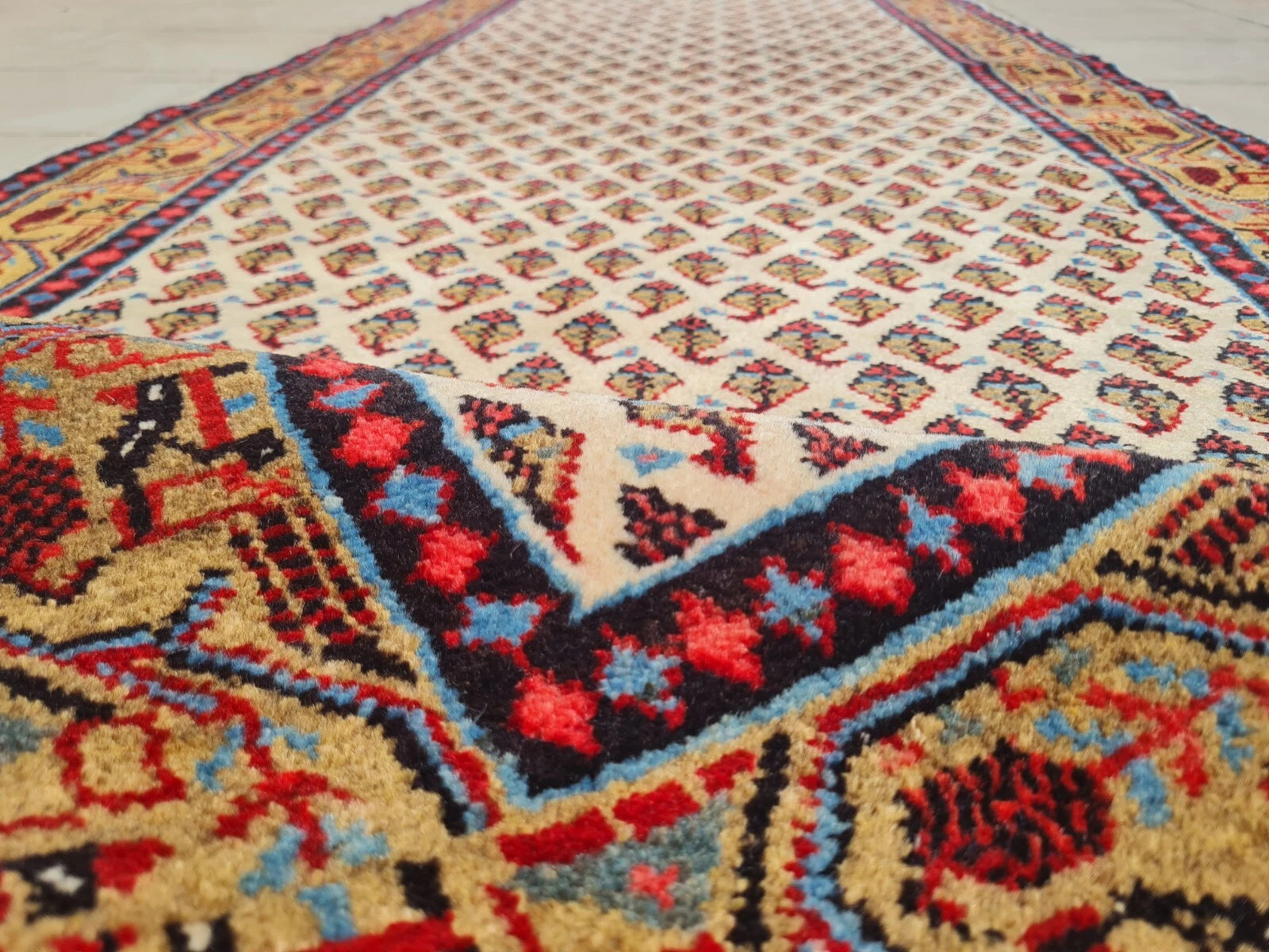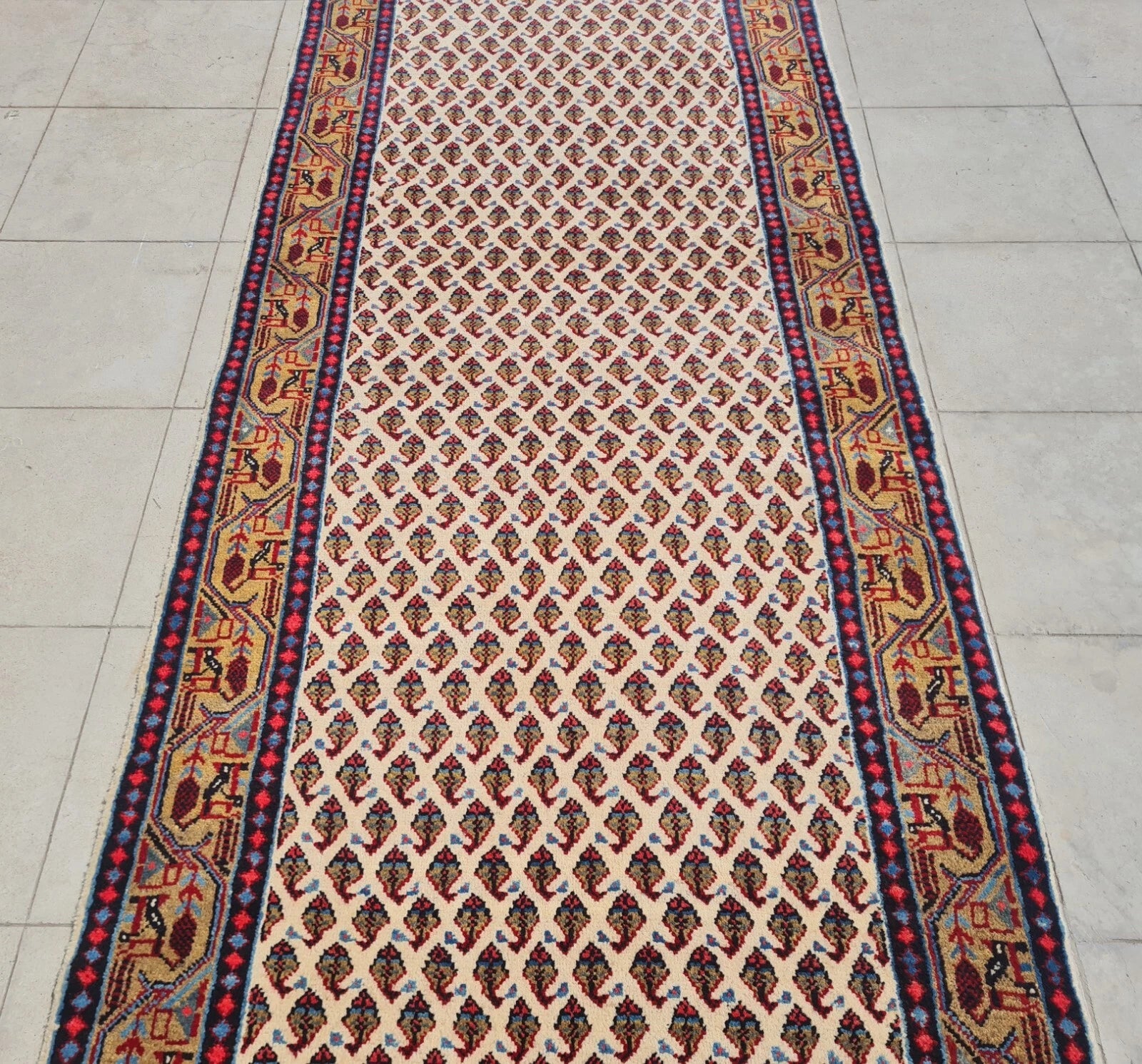 Hand Knotted Vintage Badam Gul Mir Wool Area Runner Rug 10 x 3 Ft
