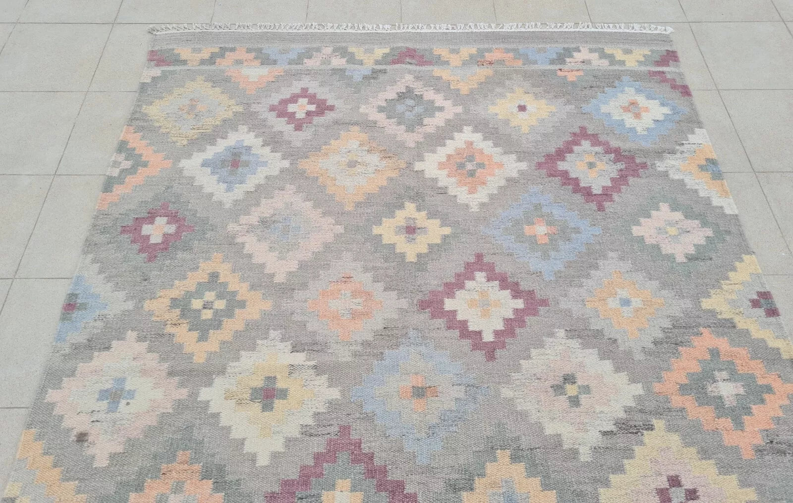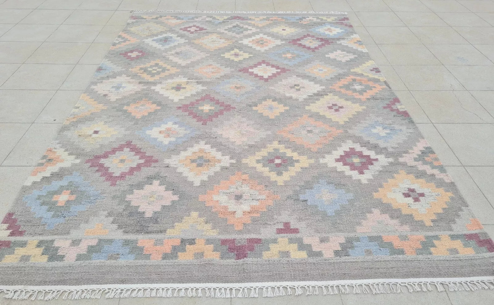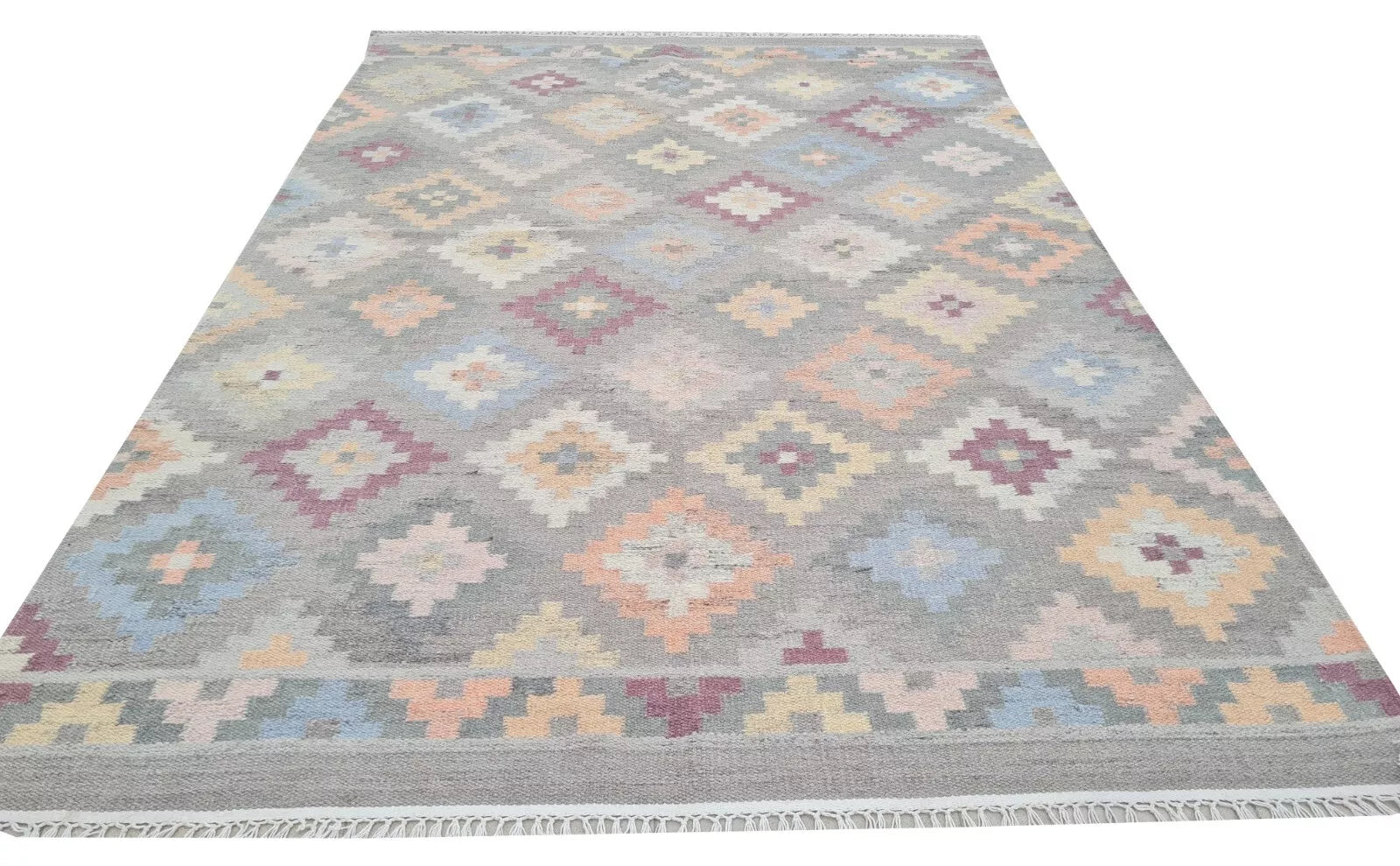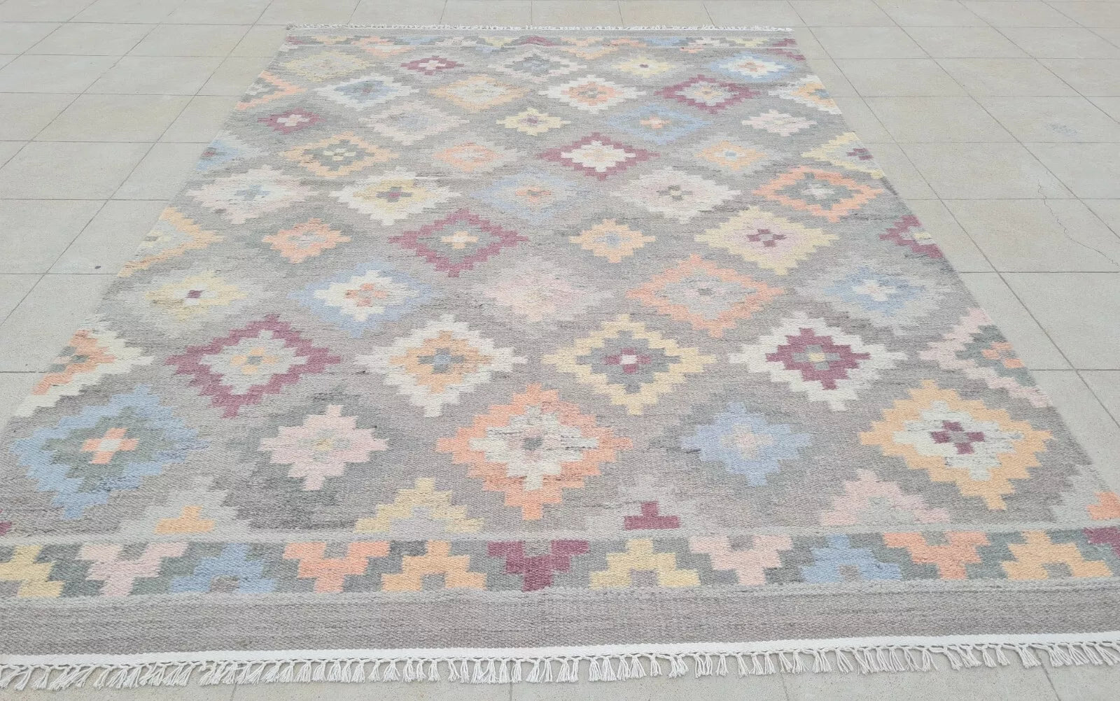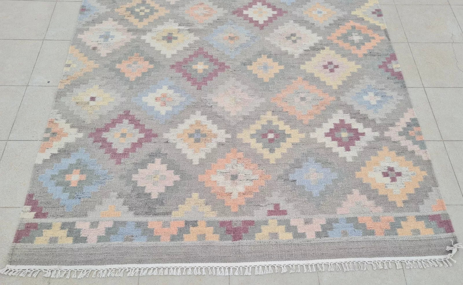 Authentic Hand Knotted Vintage Flat Weave Kilim Wool Area Rug 8 x 5 Ft