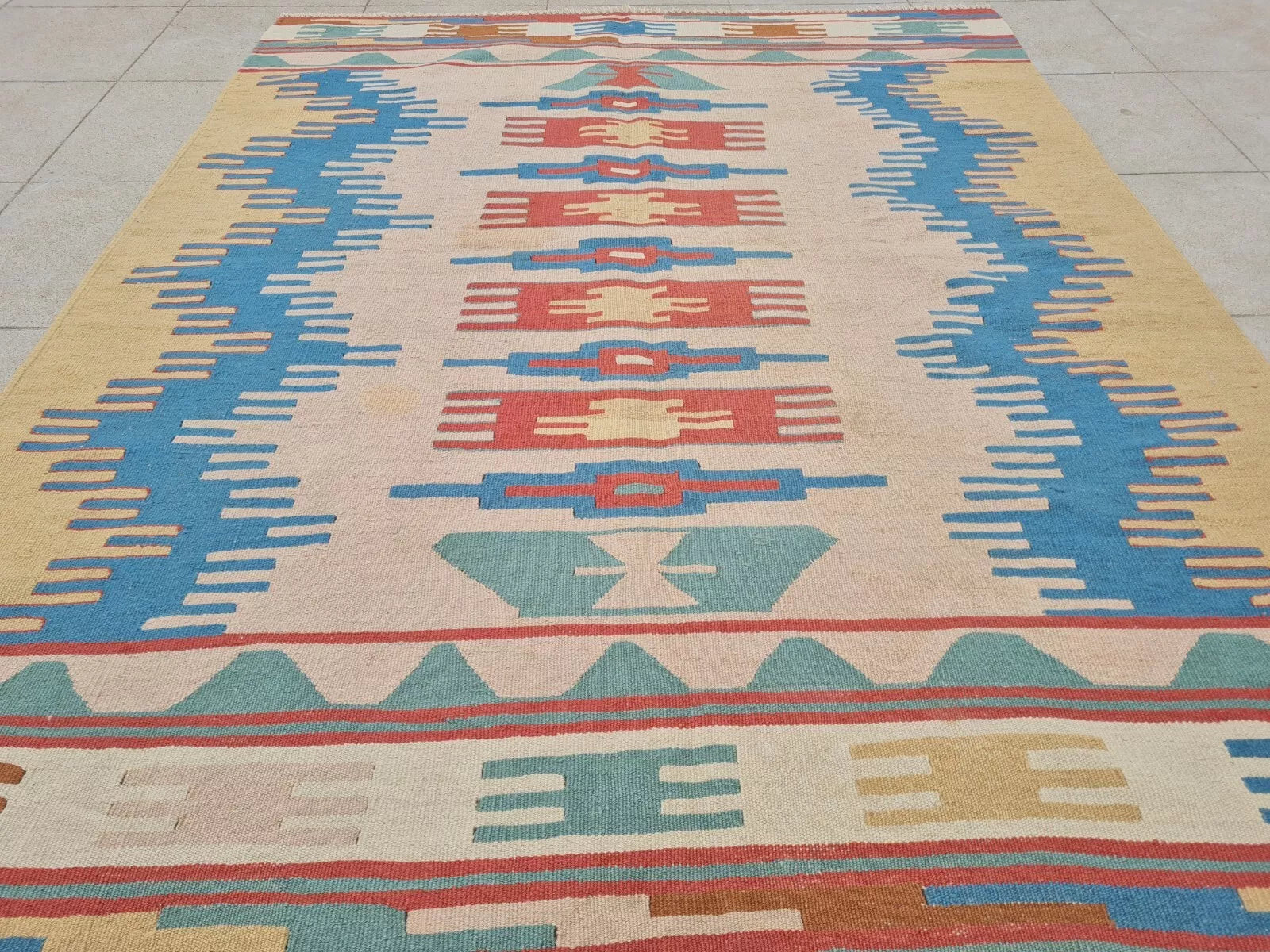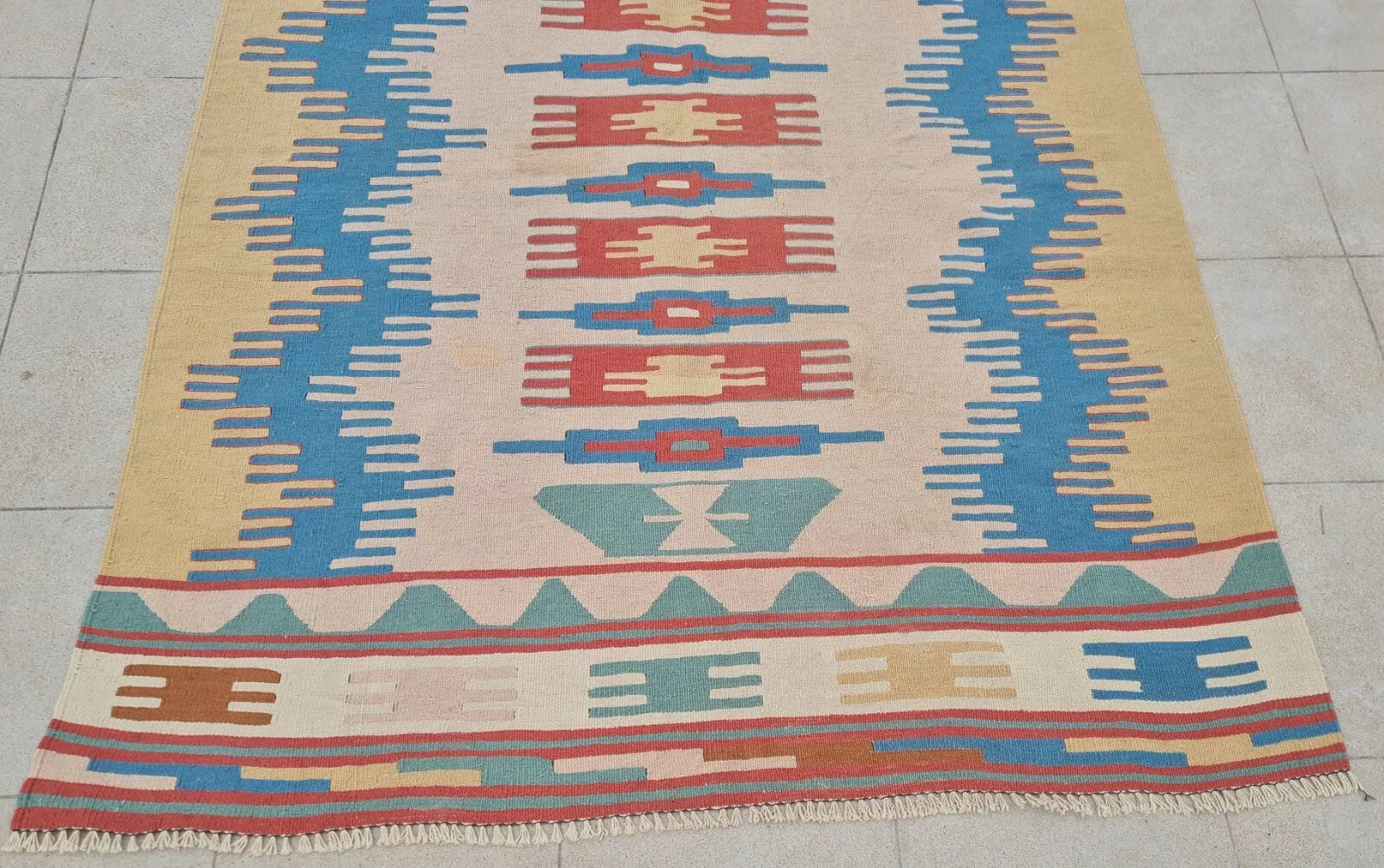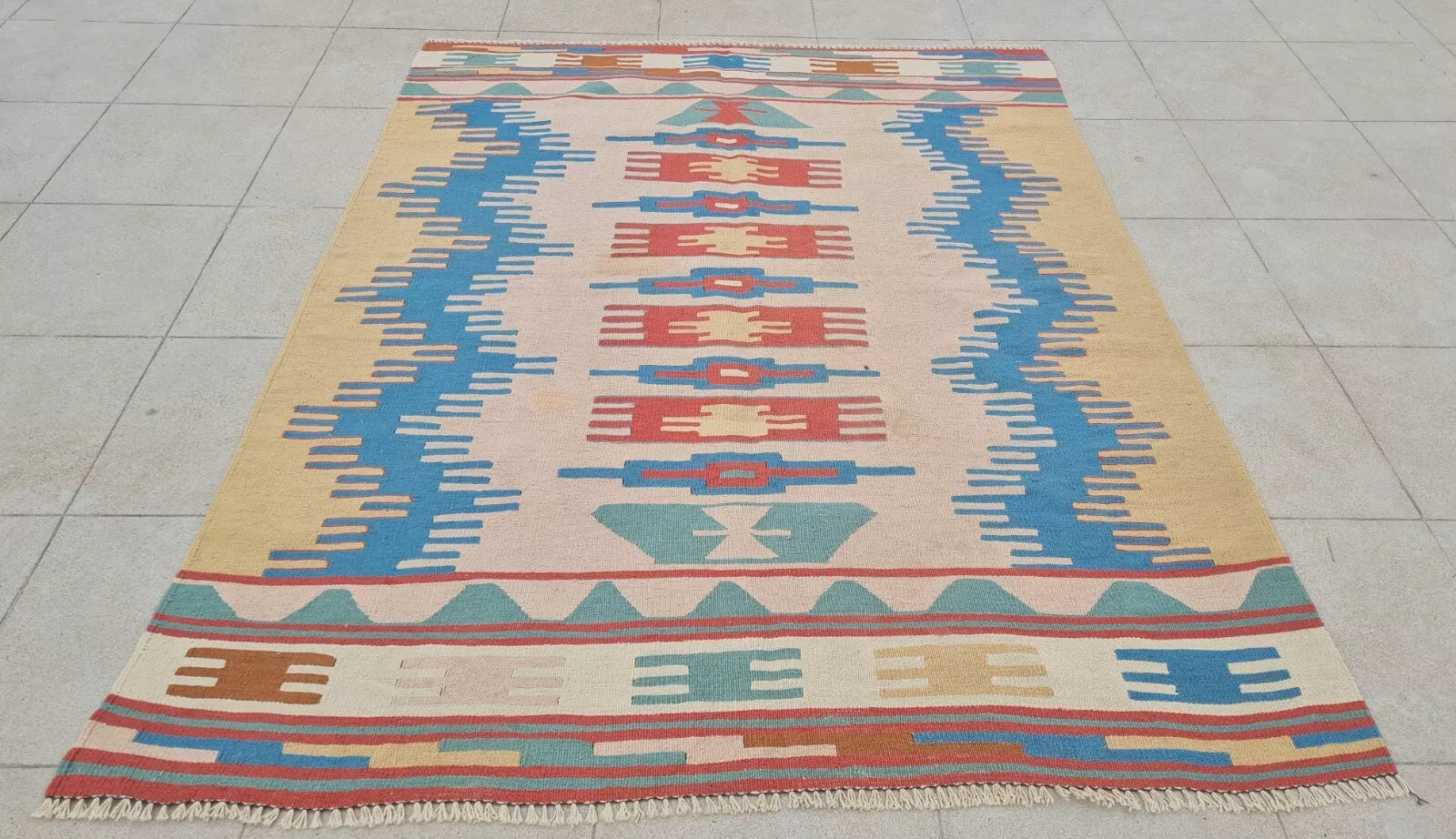 Authentic Hand Knotted Vintage Turkish Kilim Kilm Wool Area Rug 5 x 4 Ft