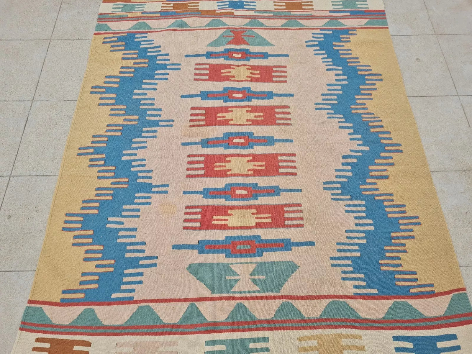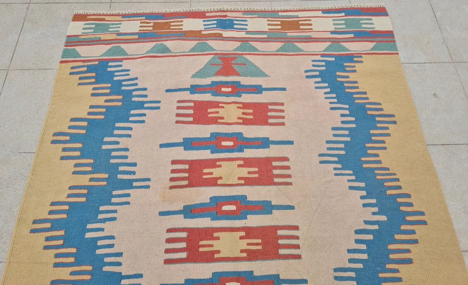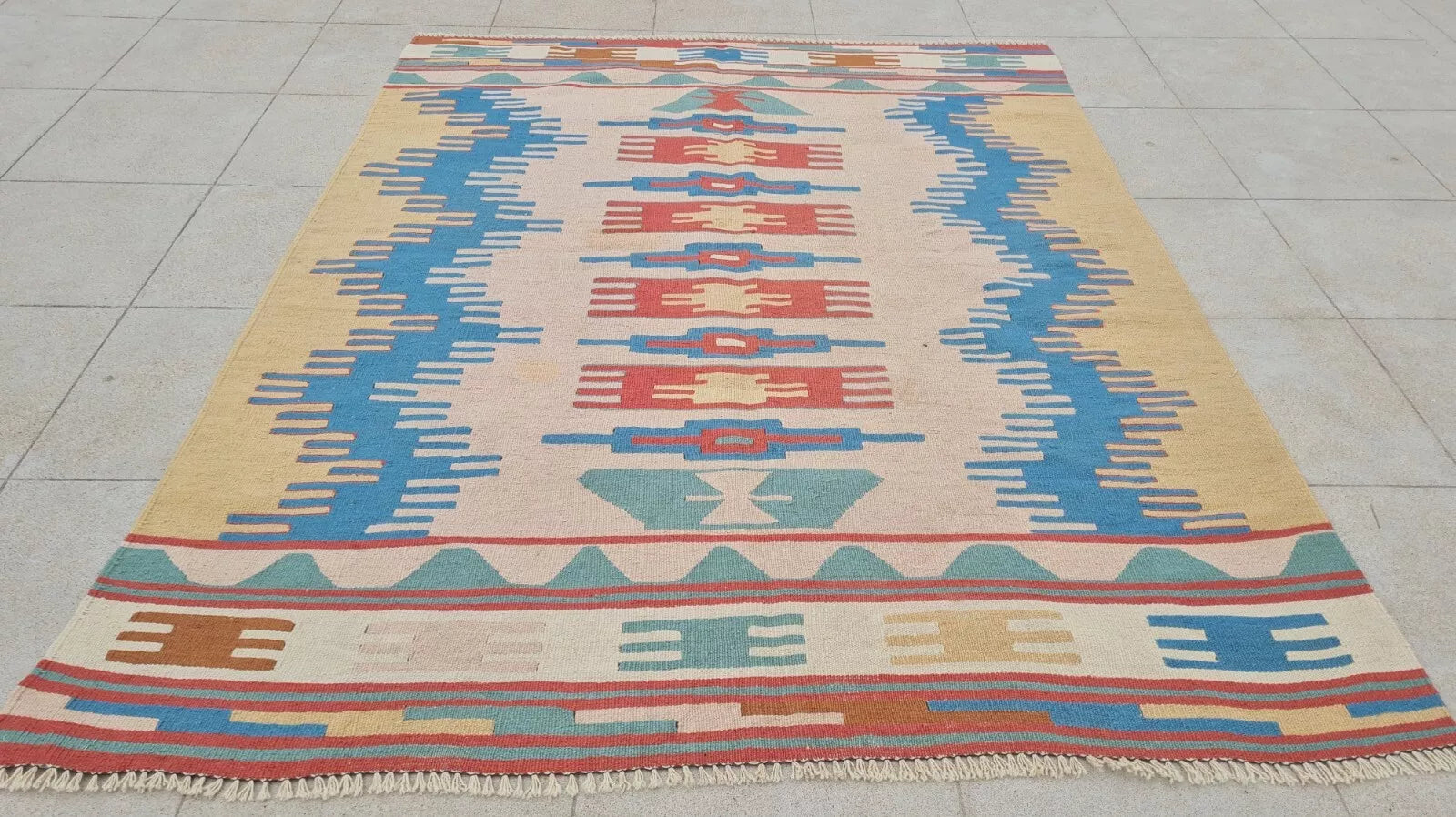 Authentic Hand Knotted Vintage Turkish Kilim Kilm Wool Area Rug 5 x 4 Ft