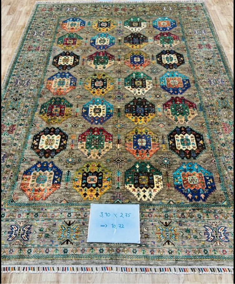 This is a specialized bulk order for two large Afghan hand knotted Gabbeh rugs and a Badam rug.