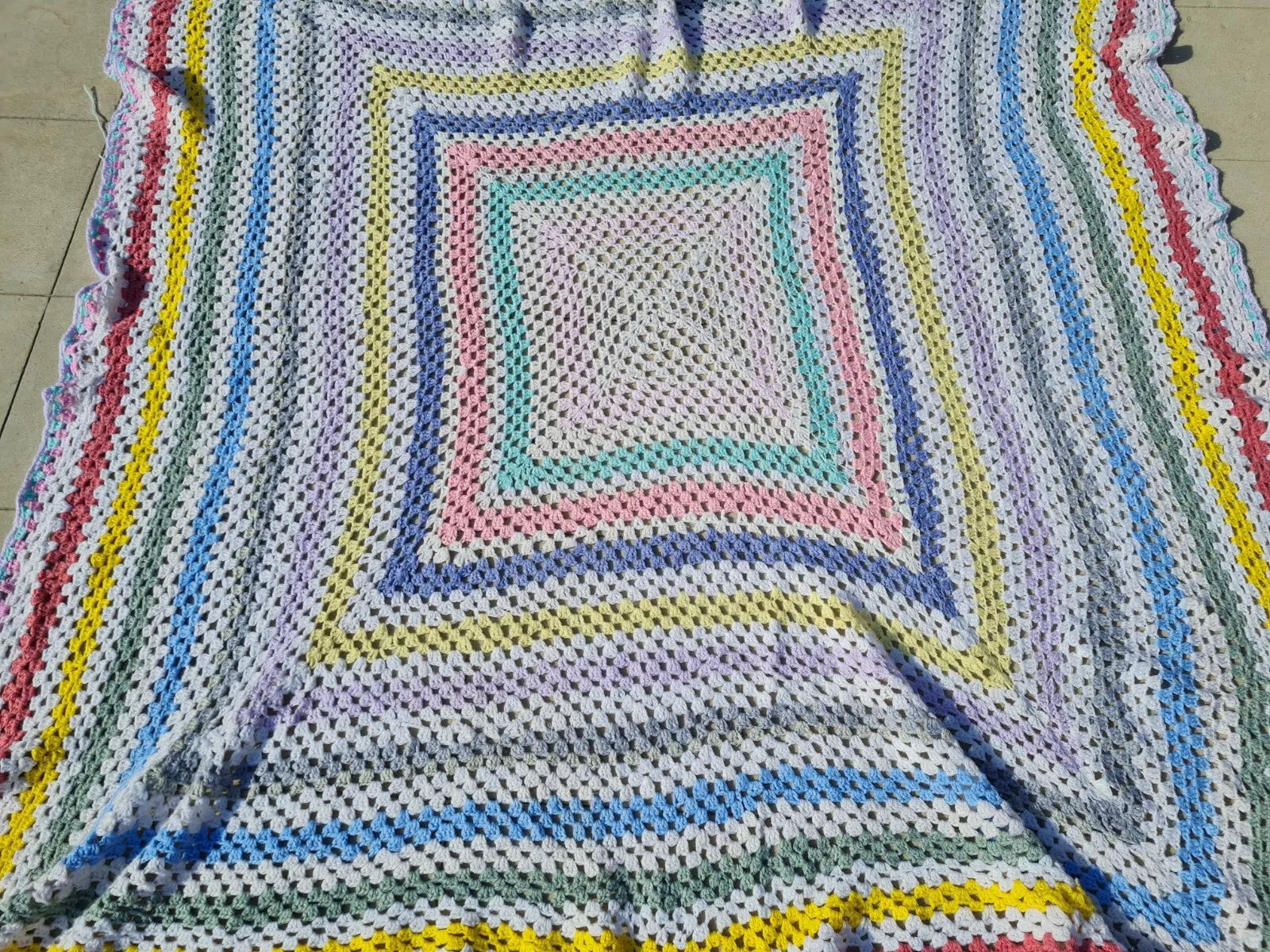 Roseann Square Couch Blanket Crocheted Colorful Boho 6 x 6