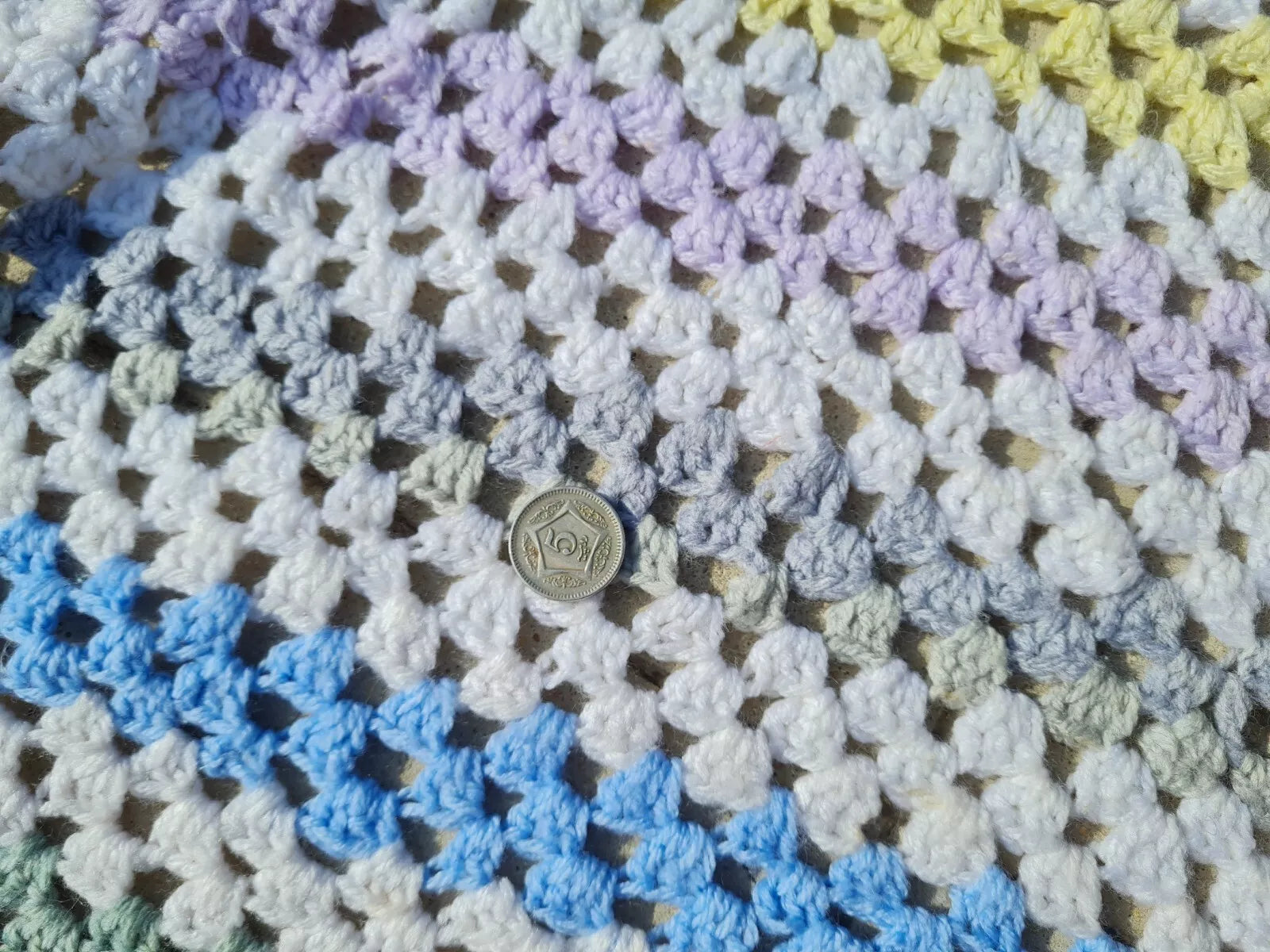 A delightful and light-weight blanket, wall-piece, picnic piece full of light pastels.